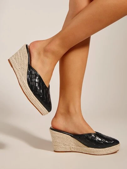 Krokodilpräglad Espadrille Kilklackar Mulskor - Svart - Visa 1