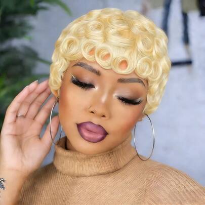 Curly Wig Human Hair Wig Pixie Cut Wig Short-Haired Wig With Bangs Wig Fashion Styling Rose Net Hat For Party Cosplay Daily Use Wigs Suitable For All Women - Multicolor - View 1