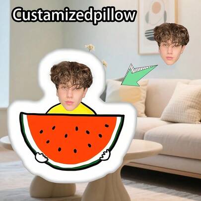 Custom Photo Palm Print Pillow - Hilarious Gag Gift, Realistic 3D Printed Face Design, Soft Plush Fabric, Perfect Personalized Present For Her - Watermelon - View 11