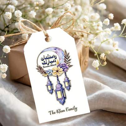 Anpassade Ramadan-presentetiketter, Anpassade presentetiketter, Anpassade presentetiketter, Anpassade tackkort, Anpassade klädetiketter, Anpassade papperskartongetiketter, Anpassad kartong, Anpassade tackkort, Anpassade hälsningskort, Fest, Semester, Samling, Restaurang, Bröllop, Tillbaka till skolan, Biktsäsong - Ramadan hängande tagg - Visa 5