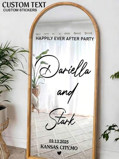 Customizable Wedding Stickers, Suitable For Bride And Groom Mirrors, With Customizable Name Welcome Signs. Features A Classic Matte Finish, Self-Adhesive, And Disposable. Perfect For Wedding Receptions, DIY Decorations, And Love-Themed Events. Rectangular Shape, Suitable For Glass Surfaces, Creating A Happy And Memorable Wedding Party. - Multicolor 03 - View 1