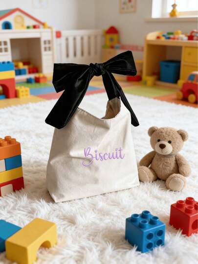 Customized Embroidered Name Children's Canvas Tote Bag, Cute Bow Handbag, Personalized Mini Purse For Girls, Fashion Kids Wallet, Birthday Gift, Party Favor Bag