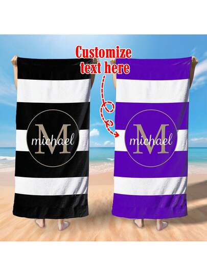 Customized Initial Letter Beach Towel, Personalized Text Towel, Adult Pool Towel, Vacation Gift, Beach, Surfing, Wedding Anniversary Gift, Valentine's Day Gift, Birthday Gift, Gift For Friends/Couples/Family/Pets - Multicolor - View 1