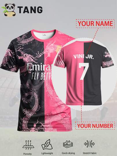 Anpassad La Liga herrfotbollströja, bekväm sporttröja med rund hals, lämplig för fotbollsträning, fritidskläder och presenter - Rosröd - Visa 5