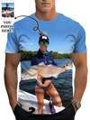Customized Short Sleeve T-Shirt For Men, Customized With Self-Portrait/Baby/Friend/Idol/Couple/Family/Party/School/Sports/Pet/Love Photo Prints, Gift For Boyfriend Ornamental,Dawg Stylish,Fashion,Hipster,Contracted,Easy Costume,Modest Fashion,Minimal Chic,Casual Custom,Unique,Personalized Ideal Gifts For Him Family,Boyfriend,Friends,Children,Daily Office Chic