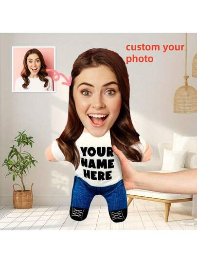 Customized Photo Throw Pillow, Cute Cartoon Design, Blue Pants, Portrait Customized Pillow, Double-Sided Printing, Sofa Cushion, Unique Birthday Gift, Christmas, Halloween, Thanksgiving, For Family And Friends - Upload Pictures to Customize Pillows - View 1