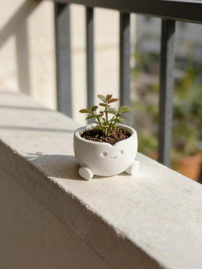 Cute Cartoon Flowerpot Creative Smiling Face Small Sculpture Flowerpot With Drainage Hole, Adorable Small Flowerpot, Suitable For Spring Gardening, Multifunctional Home Decor, Applicable To Balcony, Window Sill, Office Desk, Coffee Table And Bedside Cabinet, Suitable For Planting Small Succulents And Mini Plants