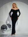 D&M Plus Paljettbroderi Sexig Djup V-ringad Långärmad Balklänning med Fest och Aftonklänning