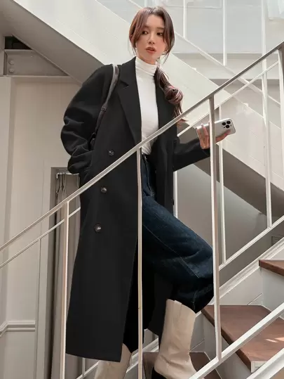 DAZY Dubbelknäppt överrock med nedsänkt axel, damkläder för hösten - Svart - Visa 1