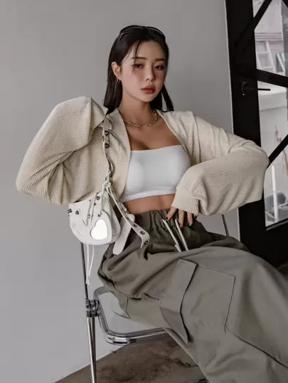 DAZY Raglanärmad öppen framtill Crop Top Långärmad Damtoppar, Höstkläder Damkläder Hoodie - Beige - Visa 8