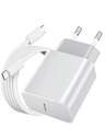 PD 20W USB-C väggladdare kompatibel med iPhone 17/16/15/Pro/Pro Max snabbladdning, Euro-laddare typ C nätadapter med 1 USB-C till typ C snabbladdningskabel, kompatibel med Galaxy och Android-telefon, USB C väggladdare för hemmet, kontoret, resor och presenter lämplig för kontor, studentrum och hem