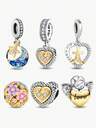 1 st. moderiktiga mor- och dotterhjärtanhängen med kubisk zirkoniapärla som passar för kvinnor armband, gör-det-själv-smyckestillverkning