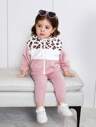 SHEIN Tween flickor casual & homewear söt tecknad öronhuva dragkedja patchwork leopard plysch teddy fleece jumpsuit