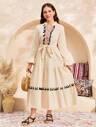 SHEIN Tween flickor Casual V-hals Super lång metallic trim fransar lös klänning