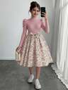 SHEIN Tonårsflicka Lila, Fritidsresor, Vår och sommar, Helgdagar, Hemkomst, Avslappnad stickad lapptäcke, Vävt märke, Rund halsad långärmad toppset, Tillbaka till skolan