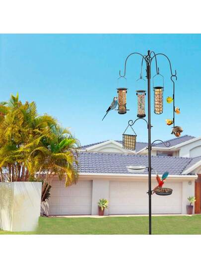 Deluxe fågelmatningsstationssats metall fågelmatningsstation med stativ 238 cm höjdjusterbar matningsstation Fåglar med 3 matare, J-kroksatser och 5-stifts stabilisator för korn jordnötter - 94 tum med 3 matare & J-kroksatser - Visa 1