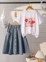 Young Girl' Medium Wash Blue Star Applique Brodery Distressed Skinny Flare Jeans