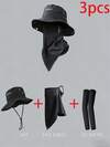 1pc/3pcs Wide Brim Sun Hat, Men's Outdoor Cap, Soft & Breathable, Sun Protection Set Includes Hat, Face Mask, Arm Sleeves, Suitable For Outdoor Travel And Work