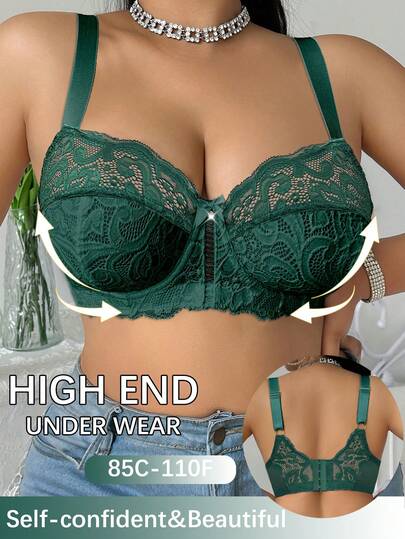 DesireSculpt 1pc Plus Size Women Lace Underwire Bra - Army Green - View 1