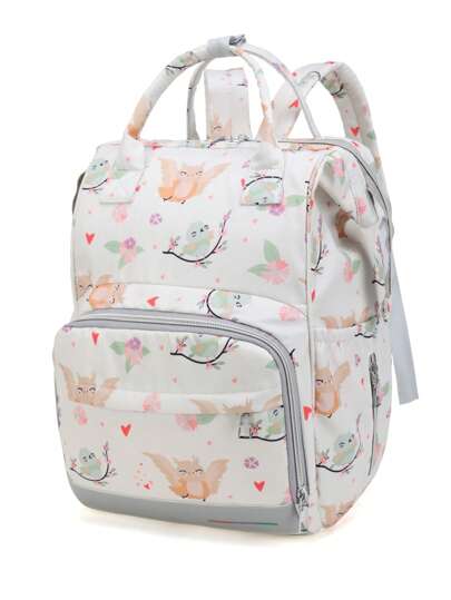 Baby Flower & Bird Print Polyester Large Capacity Diaper Bag With Adjustable Strap For Outdoor - Multicolor - View 7