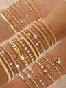 Slumpmässiga 12st/7st/5st/3st/1st Vintage Fashionabla Eleganta Metall Flerelement Retrostil Konstpärla Blomma Sjöstjärna Snäcka Fjäril Vågknut Rund Skiva Flerskiktslinje Kors Ihåligt Bredt Armbandsset, Enkelt Personligt Överdrivet Lyxigt High-End Smycke Lämpligt För Kvinnor Män Par Helgdag Fest Bröllop Datum Vardagskläder Mångsidiga Accessoarer (Blandade Stilar Skickas Slumpmässigt)