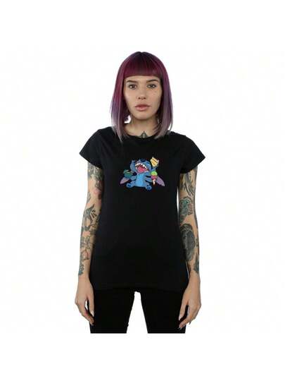 Disney Womens/Ladies Lilo And Stitch Munchies Cotton TShirt (Black) - Coffee Brown - View 1