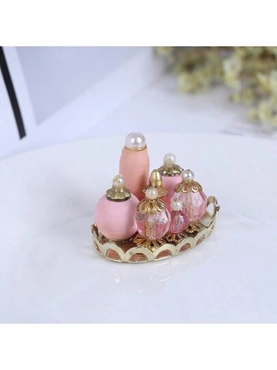 Dollhouse Miniature Perfume Set Tray: 1/12 Miniature Replica Perfume Decoration Model Mini Furniture - Pink - View 1