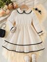 Vår-/höstklänning för ung flicka, stjärnmönster i mesh, kontrasterande prinsessa med fladdrande ärmar