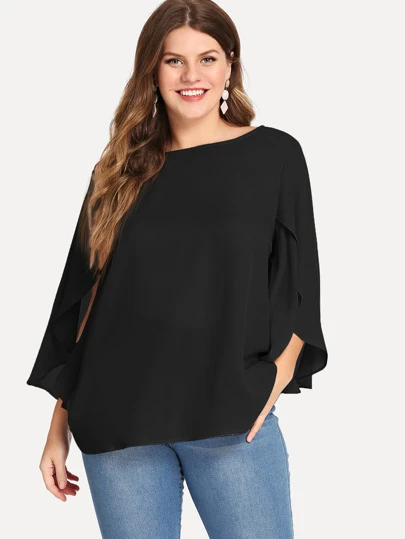 SHEIN LUNE Svart Krås Slätt Tillfällig Plus Storlek Blusar - Svart - Visa 1