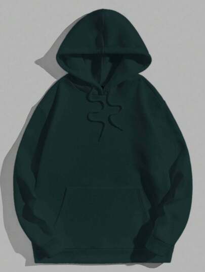 EURMUSE 100%Cotton Men's Hooded Sweatshirt With Pocket And Drawstring - Dark Green - View 1