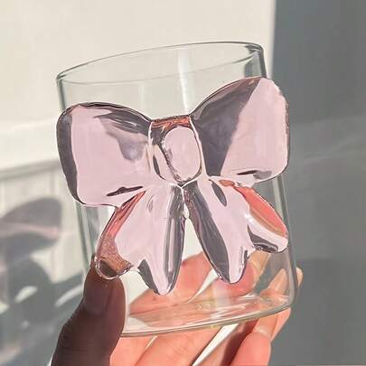 Elegant Pink Bow Design Borosilicate Glass Cup - Heat-Resistant, Reusable Cold Drink Cup, Suitable For Tea, Coffee, Smoothie | Suitable For Graduation, Birthday Celebration - Multicolor - View 1