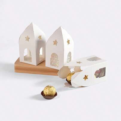 Elegant White Castle Design Foldable Gift Box With Star & Moon Cut-Out Pattern - Suitable For Wedding Party Cookies, Candy And Small Gifts, Minimalist White Castle Foldable Gift Box - Versatile Star & Moon Cut-Out Pattern Packaging For Cookies, Candy And Party Favors - Multicolor - View 10