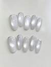 10pcs Pure Handmade Press On Nails Long Oval Nail White And Silver Cat Eye Nails France Cute Pain Y2k Gentle Elegant For Women And Girl,Spring Summer Fall Winter,Holiday And Daily Life Use