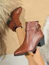 Höst/vinter damstövlar i westernstil med broderade klackar, bruna cowboystövlar i vintagestil, ridstövlar med spetsiga tår och grov klack, retro