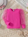 Elladie kids Tween flicka enfärgad enkel ihålig hoodie med rund hals