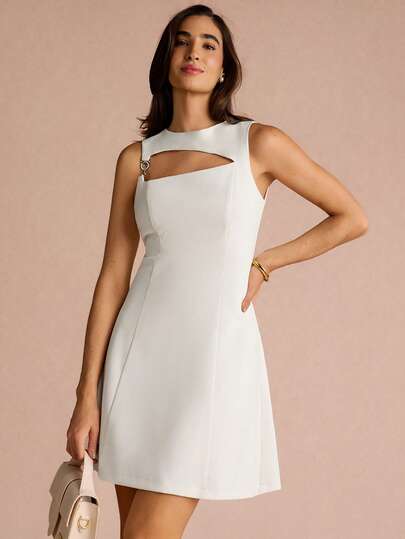 Enchnt Women's Solid Color Minimalist Sleeveless Short Dress, Casual Everyday Wear