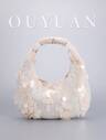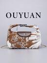 Damhandväska med vintage spetsbroderi - Brunt tyg med blombroderi, paljettkedja och topphandtag, axelväska med unik design för pendling och dejting (slumpmässigt mönster)