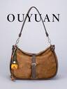 Vintage hoboväska i mocka med spetsbroderi, handvävd knutväska med unik charm, exklusiv handväska i nischdesign, gränsöverskridande modehit (slumpmässiga mönster)