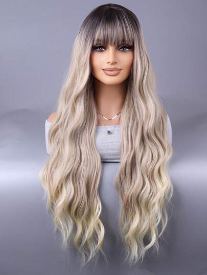 European And American Fashion Long Brown Wavy Wig With Bangs 28 "Full Head Wig - Gold - View 1