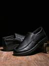 Men's Lightweight Loafers Solid Color Business Casual Moc Toe Outdoor Leather Shoes For Middle-aged