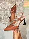 Damsandaler med spetsig tå och glitter i enfärgad hög klack