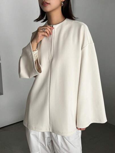 FRIFUL Långärmad T-shirt med nedsänkt axel och halv dragkedja för kvinnor - Beige - Visa 1