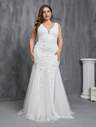 Faeriesty Plus Size Blommig Applikationsdetalj Mesh Formell Klänning Vit Elegant Bröllopsbrudklänning, Brud