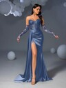 Faeriesty Elegant axelbandslös korsettaftonklänning med hög slits och avtagbara operahandskar – Smickrande silhuett, asymmetrisk sidodrapering för röda mattan-galor, smokingbröllop, lyxiga jubileumsfester, formella välgörenhetsevenemang, festklänning, bröllopsgäst