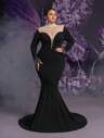 Vit långärmad brudklänning med chiffong och fisksvanssilhuett för gästfester, evenemang i botanisk trädgård och naturinspirerade bröllop