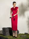 Kontrastmaska Skära Ut Draperad Dragkedja Slits Enkel Party Klänning