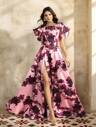 Faeriesty Elegant chiffongklänning med blommönster och sjöjungfrusilhuett – Lyxig elegans för evenemang på röda mattan, bröllop, galleriöppningar, galamiddagar och exklusiva sociala sammankomster