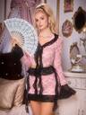 FairyFlirt Rosa satinjacquardspets med lapptäcke, volang, rosett, djup V-ringning i grenen, söt och gullig, lämplig för musikfestival, fest, semester, klubb