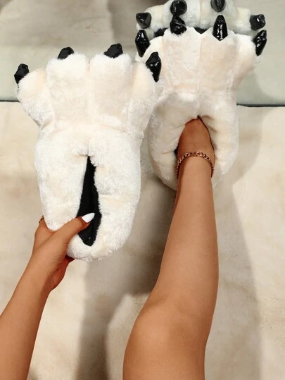 Fall/Winter Funny Dinosaur Claw Design Slip-On Slippers, Red Claw Anti-Slip Cozy Ladies House Slippers, One Size,Halloween,Fluffy Slippers - White - View 1