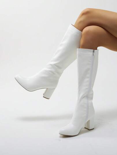 Fall/Winter Women's Fashionable & Classic Minimalist Side Zipper Chunky Heel Boots - White - View 1